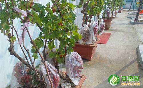 1 種類與苗木   選擇鮮食和欣賞兼用的種類,如早生高墨、乍娜、葡萄園皇后、森田尼、美人指、紅意大利、晚紅等。在冬天溫暖的南邊地區(qū),可直接扦插育苗;北方冬天冰冷需下架防寒的地區(qū),要選用抗寒砧木枝條進行扦插,然后綠枝劈接種類育苗,也可在露地育苗,直接栽于盆內(nèi)。